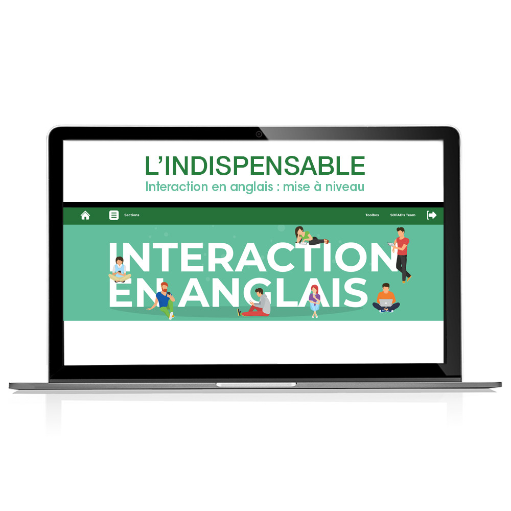 L’INDISPENSABLE – Interaction en anglais : Mise à niveau est une formation en ligne interactive et complémentaire pour outiller l’apprenant en communication orale en anglais.